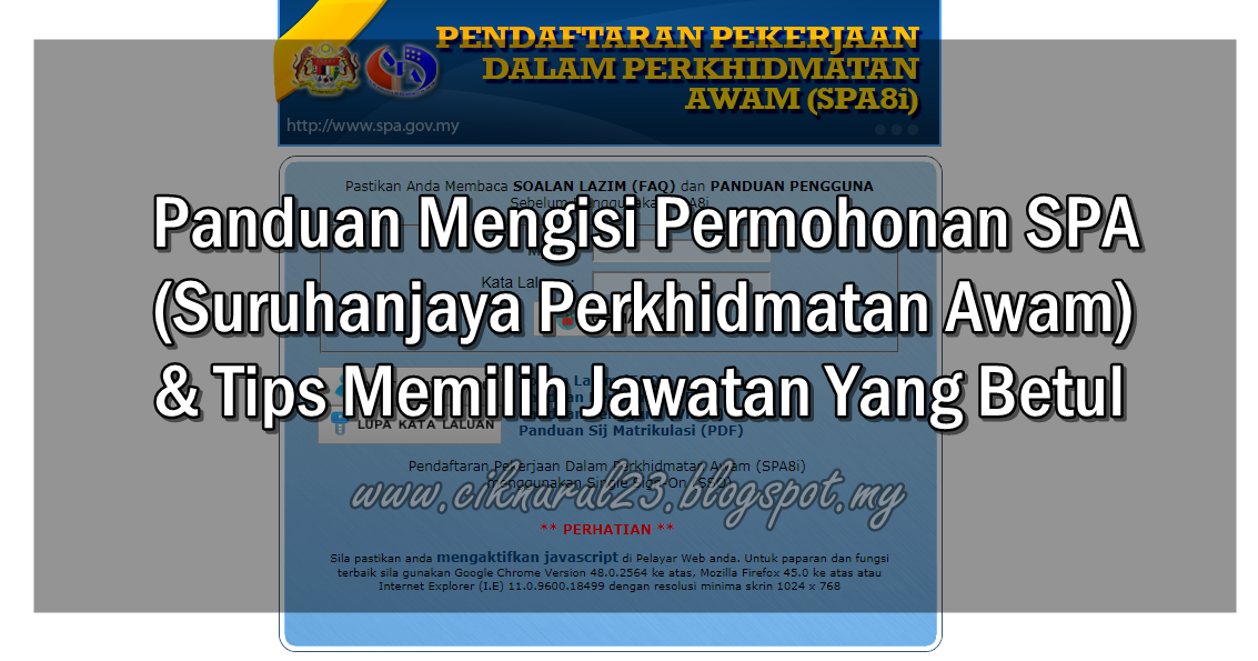 Bagi anda yang ingin membuat sebarang permohonan jawatan dalam portal spa8i, anda perlu membuat semakan status permohonan anda. Semakan status permohonan jawatan spa8i. Semakan juga boleh dilakukan melalui portal spa pada bulan oktober bagi sesi kemasukan januari dan bulan april bagi sesi kemasukan julai. Kerjaya dalam sektor kerajaan/ awam (penjawat awam) sememangnya menjadi impian anak muda yang baru sahaja menamatkan pelajaran terutama lepasan spm. Bagi permohonan secara manual, rekod permohonan akan mengambil masa untuk dikemaskini.