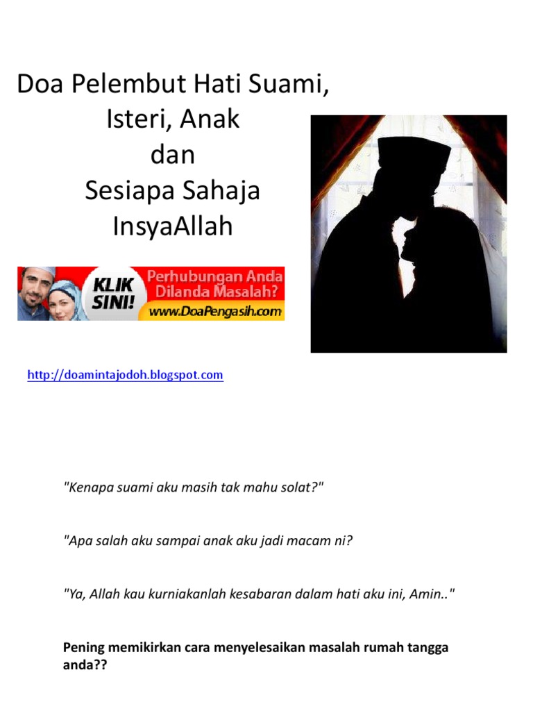 Cara yang kedua yang bisa dilakukan istri berdoa untuk melembutkan hati suami adalah ketika sedang memasak dan menyiapkan makanan untuk suami. Doa ini dibaca setiap kali selesai solat fardu: Dapatkan rahsia doa pengasih, ayat pengasih dan ilmu pengasih di sini~ by mohdizuddin5925 in types > creative writing download as pdf, txt or read online from scribd. Lalu, agar itu tidak terjadi, apakah ada doa khusus dalam. Doa pelembut hati suami untuk mengembalikan keharmonisan dan kebahagiaan dalam rumah tangga.