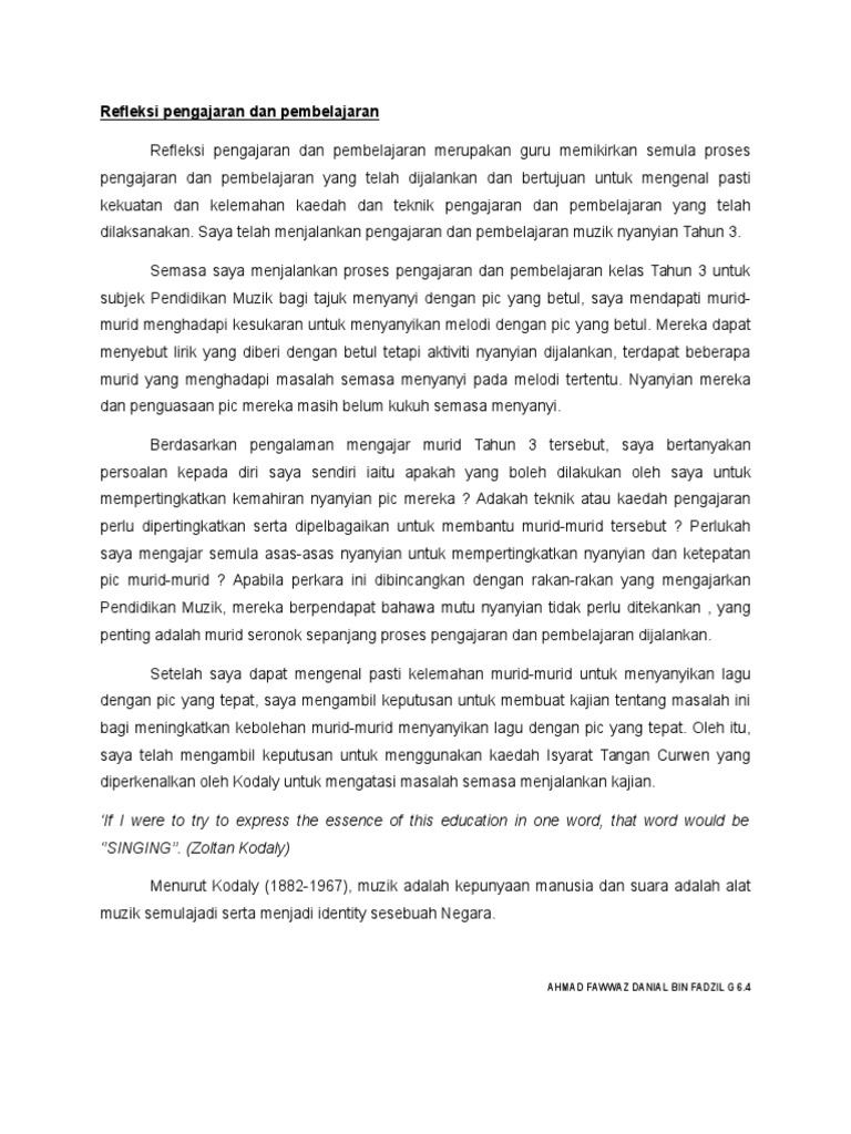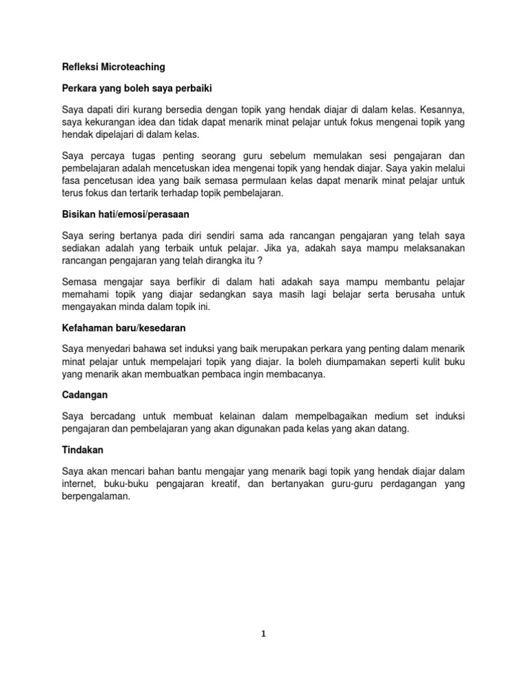 Pengajaran dan pembelajaran khususnya dalam mata pelajaran sains bagi membantu mempertingkatkan mutu proses pengajaran dan pembelajaran yang dilaksanakan dan secara tidak langsung membangunkan keprofesionalan guru tersebut. Untuk muat turun sila ke pautan download contoh penulisan refleksi selepas sesi p&p. Dengan refleksi siswa bisa menilai mengenai bagaimana' dan mengapa sebuah pembelajaran bisa berlangsung, dan mengerti apa yang harus dilakukan setelah pembelajaran selesai. Bmm3105 pengajaran dan pembelajaran bahasa melayu berbantukan komputer. Refleksi merupakan suatu proses yang penting dalam kitaran pembelajaran bagi kemajuan profesion keguruan.